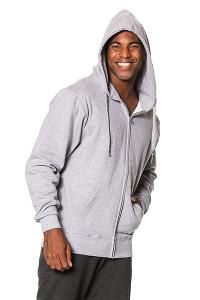 Hoodjacka i hög kvalitet med genomgående dragkedja fram, dubbel huva med platta breda snören, 2 fickor, bred lycra i rib och lätt borstad insida. Dubbelsömmar och sidosömmar.