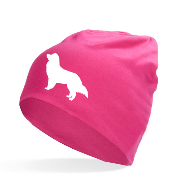 Tunn barnmössa i bomull/elastan med ett siluettmotiv av en Miniature American Shepherd. Mössan finns i flera färger.