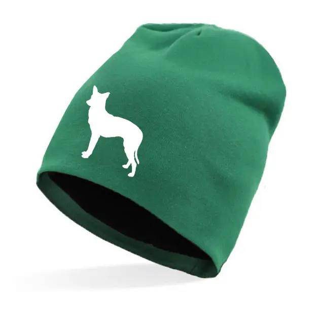 Mössa i bomull/elastan med fleecefoder och med ett siluettmotiv av en Podengo Portugues. Mössan finns i flera färger.