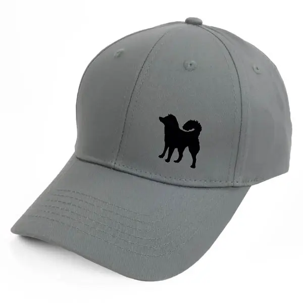 Keps i borstad bomullstwill med böjd skärm och kardborrespänne och med ett siluettmotiv av en Alaskan Malamute.
