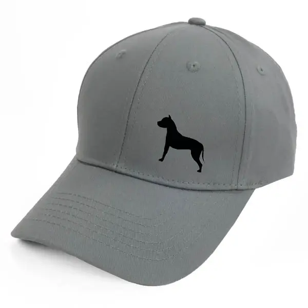 Keps i borstad bomullstwill med böjd skärm och kardborrespänne och med ett siluettmotiv av en American Pitbull Terrier