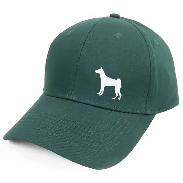 Keps i borstad bomullstwill med böjd skärm och kardborrespänne och med ett siluettmotiv av en Basenji.