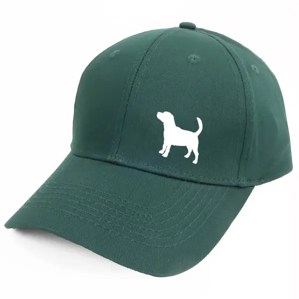 Keps i borstad bomullstwill med böjd skärm och kardborrespänne och med ett siluettmotiv av en Beagle.