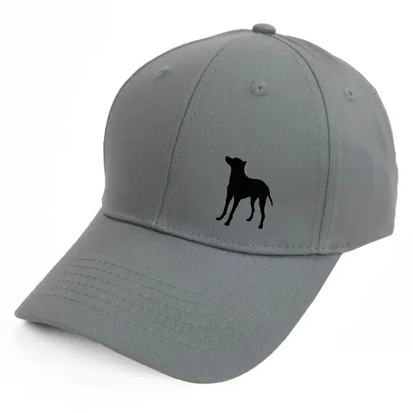 Keps i borstad bomullstwill med böjd skärm och kardborrespänne och med ett siluettmotiv av en Beauceron.