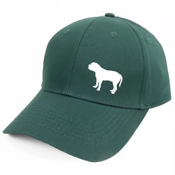 Keps i borstad bomullstwill med böjd skärm och kardborrespänne och med ett siluettmotiv av en Bullmastiff.