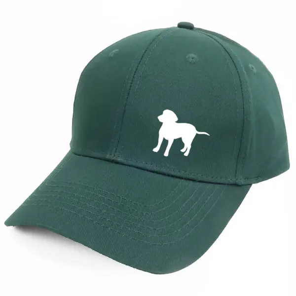 Keps i borstad bomullstwill med böjd skärm och kardborrespänne och med ett siluettmotiv av en Entlebucher Sennenhund.