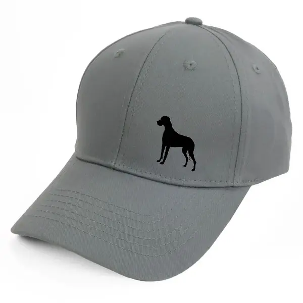 Keps i borstad bomullstwill med böjd skärm och kardborrespänne och med ett siluettmotiv av en Grand Danois
