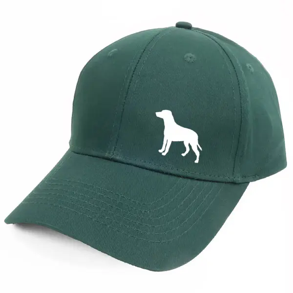 Keps i borstad bomullstwill med böjd skärm och kardborrespänne och med ett siluettmotiv av en Hamiltonstövare.