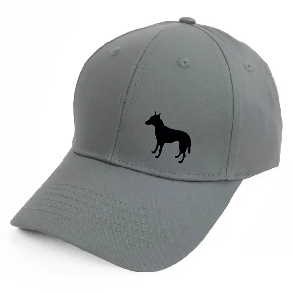Keps i borstad bomullstwill med böjd skärm och kardborrespänne och med ett siluettmotiv av en Malinois