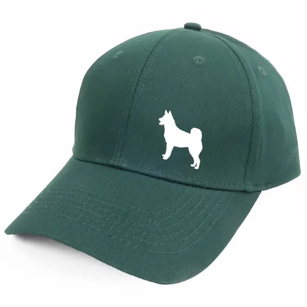 Keps i borstad bomullstwill med böjd skärm och kardborrespänne och med ett siluettmotiv av en Norrbottenspets.
