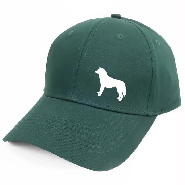 Keps i borstad bomullstwill med böjd skärm och kardborrespänne och med ett siluettmotiv av en Siberian Husky.