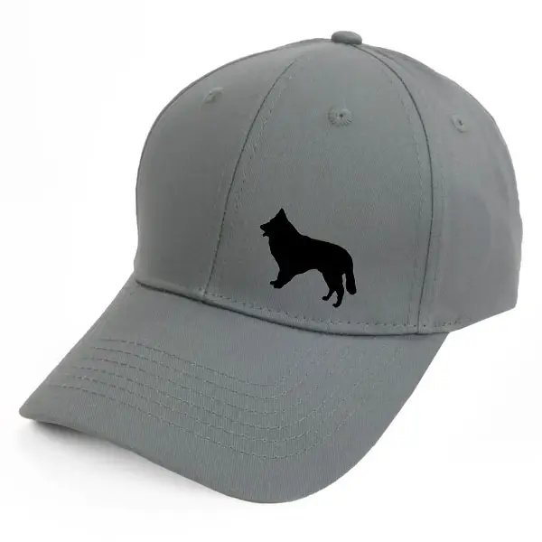 Keps i borstad bomullstwill med böjd skärm och kardborrespänne och med ett siluettmotiv av en Chodsky Pes