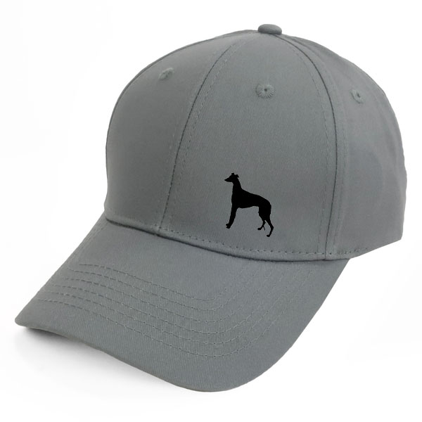 Keps i borstad bomullstwill med böjd skärm och kardborrespänne och med ett siluettmotiv av en Greyhound