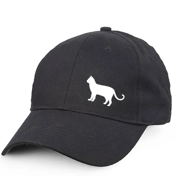 Keps i borstad bomullstwill med böjd skärm och kardborrespänne och med ett siluettmotiv av en Katt