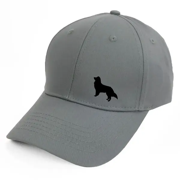 Keps i borstad bomullstwill med böjd skärm och kardborrespänne och med ett siluettmotiv av en Miniature American Shepherd