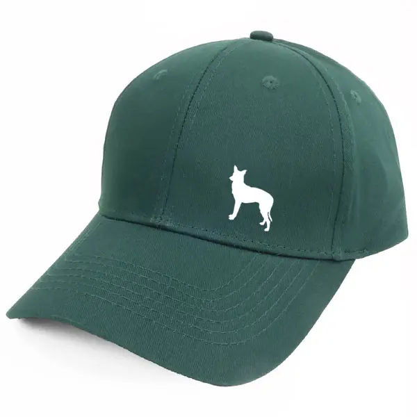 Keps i borstad bomullstwill med böjd skärm och kardborrespänne och med ett siluettmotiv av en Podengo Portugues