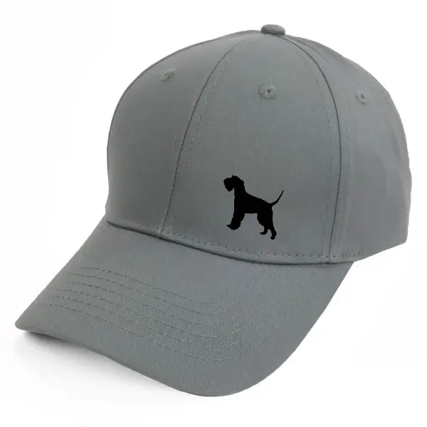 Keps i borstad bomullstwill med böjd skärm och kardborrespänne och med ett siluettmotiv av en Schnauzer