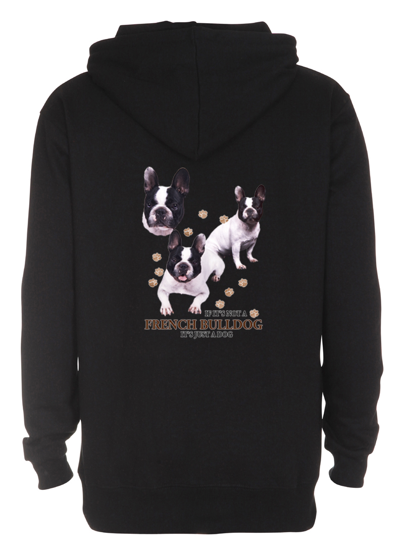 Luvtröja i bra kvalitet med ett motiv av Fransk Bulldogg tryckt på ryggen. Motivstorlek ca 19x26cm