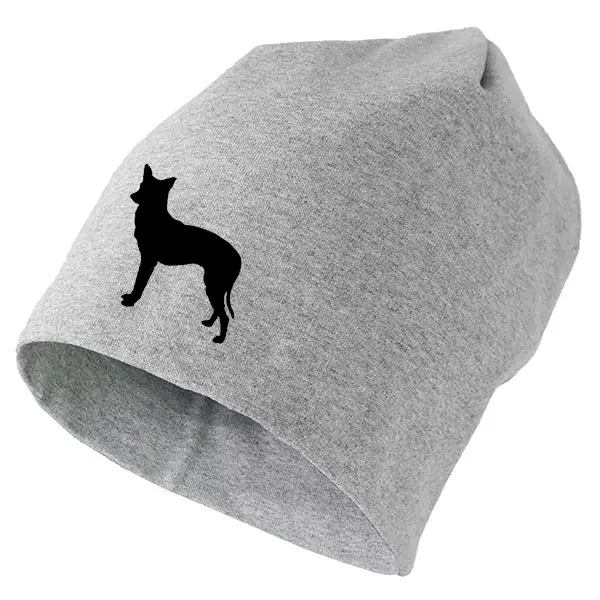 Mössa i bomull/elastan med ett siluettmotiv av en Podengo Portugues. Mössan finns i flera färger.