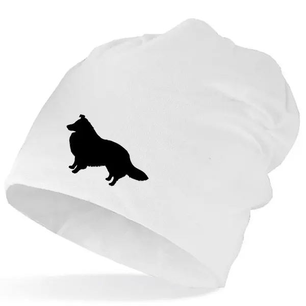 Mössa i bomull/elastan med ett siluettmotiv av en Shetland Sheepdog
