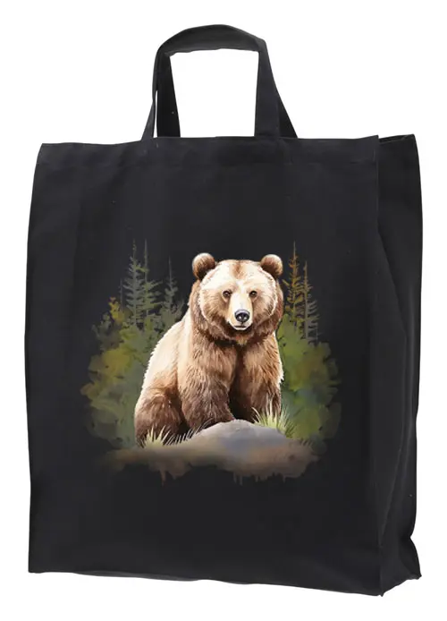 Miljövänlig tygkasse 41x45cm med 17,5cm botten i 100% bomull 250g med ett motiv av en Björn. Motivstorlek ca 24x24cm.