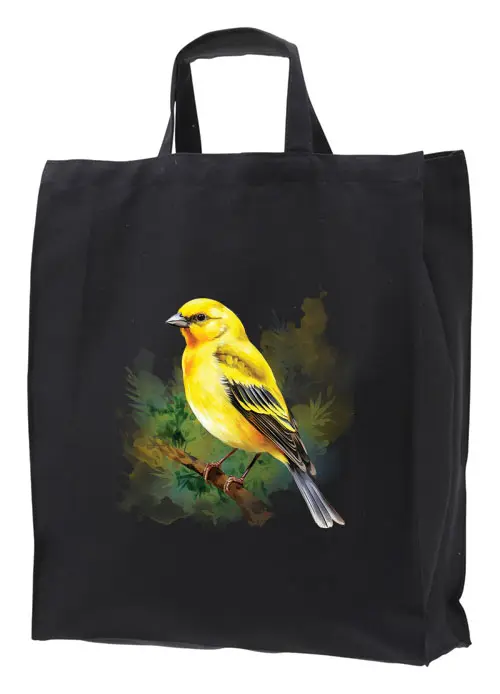 Miljövänlig tygkasse 41x45cm med 17,5cm botten i 100% bomull 250g med ett motiv av en Gulfink. Motivstorlek ca 24x24cm.
