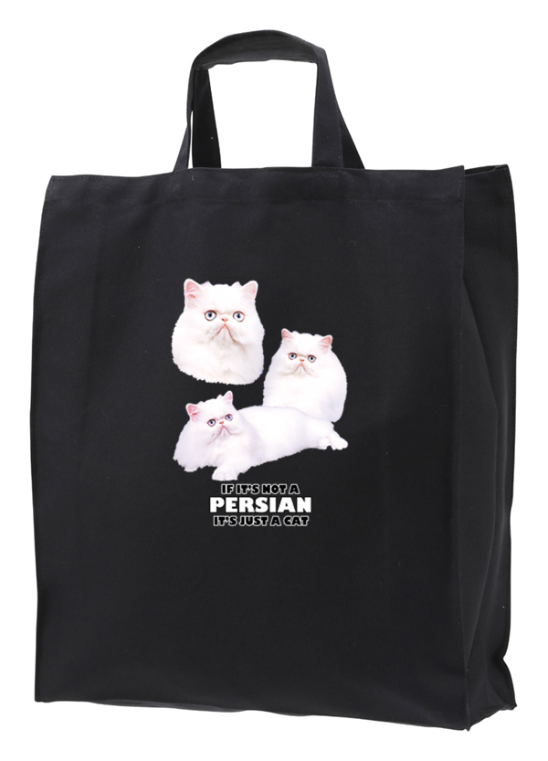 Miljövänlig tygkasse 41x45cm med 17,5cm botten i 100% svart eller naturfärgad bomull 250g med ett motiv av Perser. Motivstorlek ca 19x26cm.